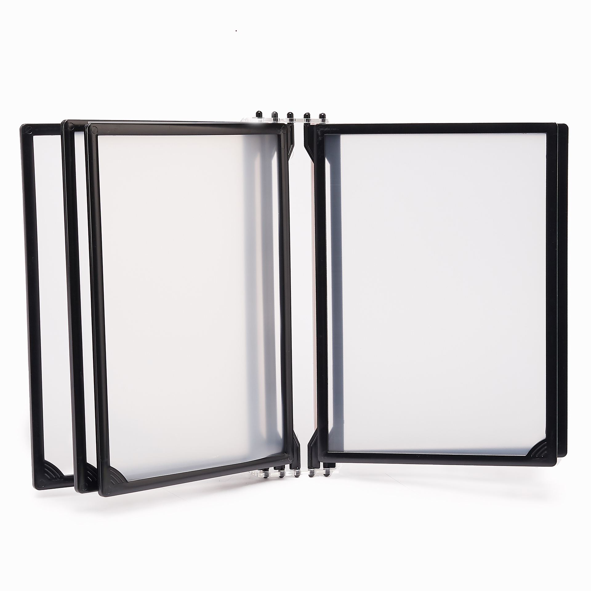 Комплект настенной перекидной системы «INFOLINE-W» с рамками «INFOLINE» для размещения информации формата А-4 вертикально. Информация легко меняется.