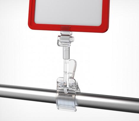 Универсальный держатель-прищепка для крепления пластиковых рамок на различных видах поверхностей. Соединение в паз, обеспечивает надежную возможность регулировки угла наклона и положения рамки.