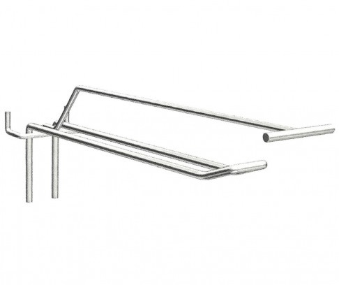 Крючок в перфорированную металлическую панель шаг 50 мм., двойной c ценникодержателем дл.200 мм Ø 4,0 мм хром