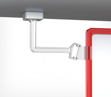 Маятниковый магнитный держатель для пластиковых рамок. Используется для создания вертикальных вывесок-стопперов с функцией откидывания при задевании их покупателем. Магнитный держатель крепится к нижней поверхности полки.