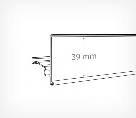 Ценникодержатель для полок с торцом из двух прутов. Чаще всего применяется в вертикальном холодильном оборудовании. Имеет смещенный в нижнюю часть профиля фиксатор для сокращения занимаемого пространства выкладки уровнем ниже и более легкого вынимания товара. Верхняя часть профиля выступает ограничителем для товара.