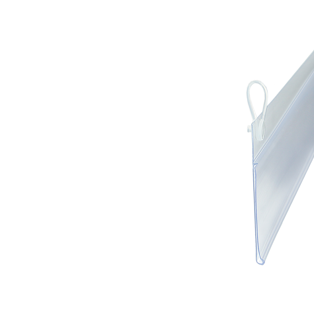 Ценникодержатель DBH39 прозрачного цвета используется для размещения ценников на сетчатом и проволочном торговом оборудовании. Особенности: подвешивается с помощью клипс, высота вставляемого ценника — 39 мм.