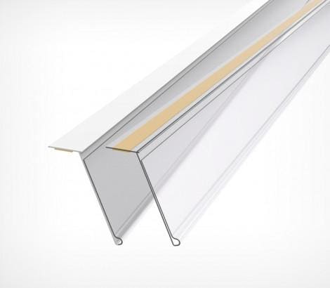 Универсальный ценникодержатель с самоклеящейся лентой. Крепится на верхней части стеллажа, полки. Угол наклона к торцу полки – 15°. Высота - 39 мм.