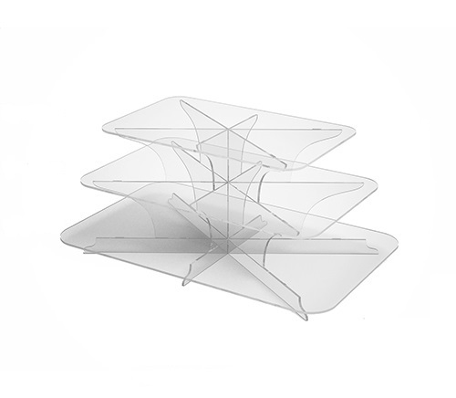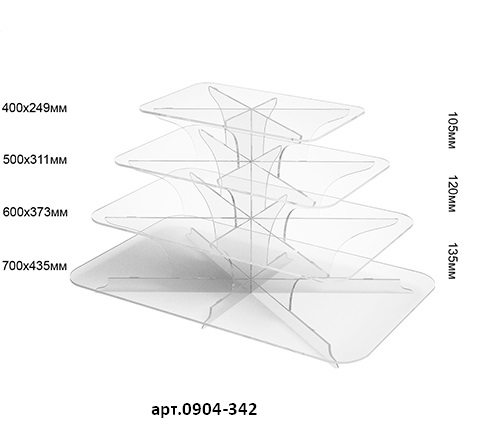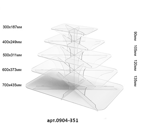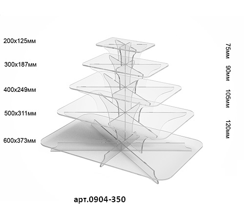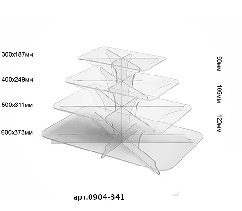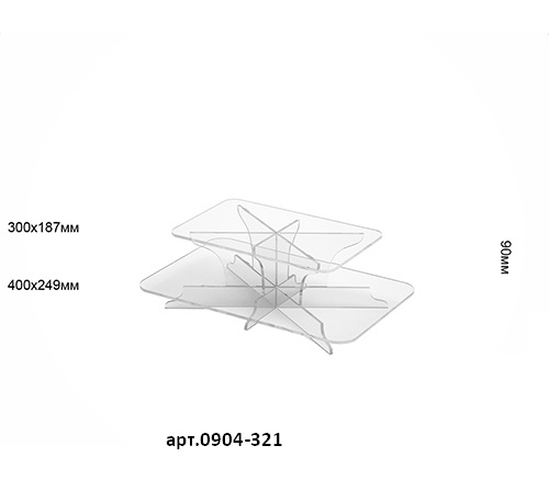 Прямоугольная  витрина для различных товаров. Материал изготовления, оргстекло пять миллиметров, лазерная обработка материала. Эффективно выделяет товары, расположенные на витрине. Возможно изготовление в белом цвете + 20% к стоимости.