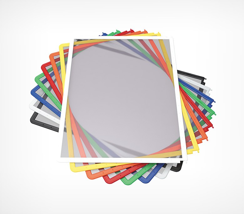 Комплект: напольное основание «DATALINE» + 10 РАМ «DATAFRAME» формата А-4 с встроенным защитным протектором. Регулировка высоты и угла наклона.
